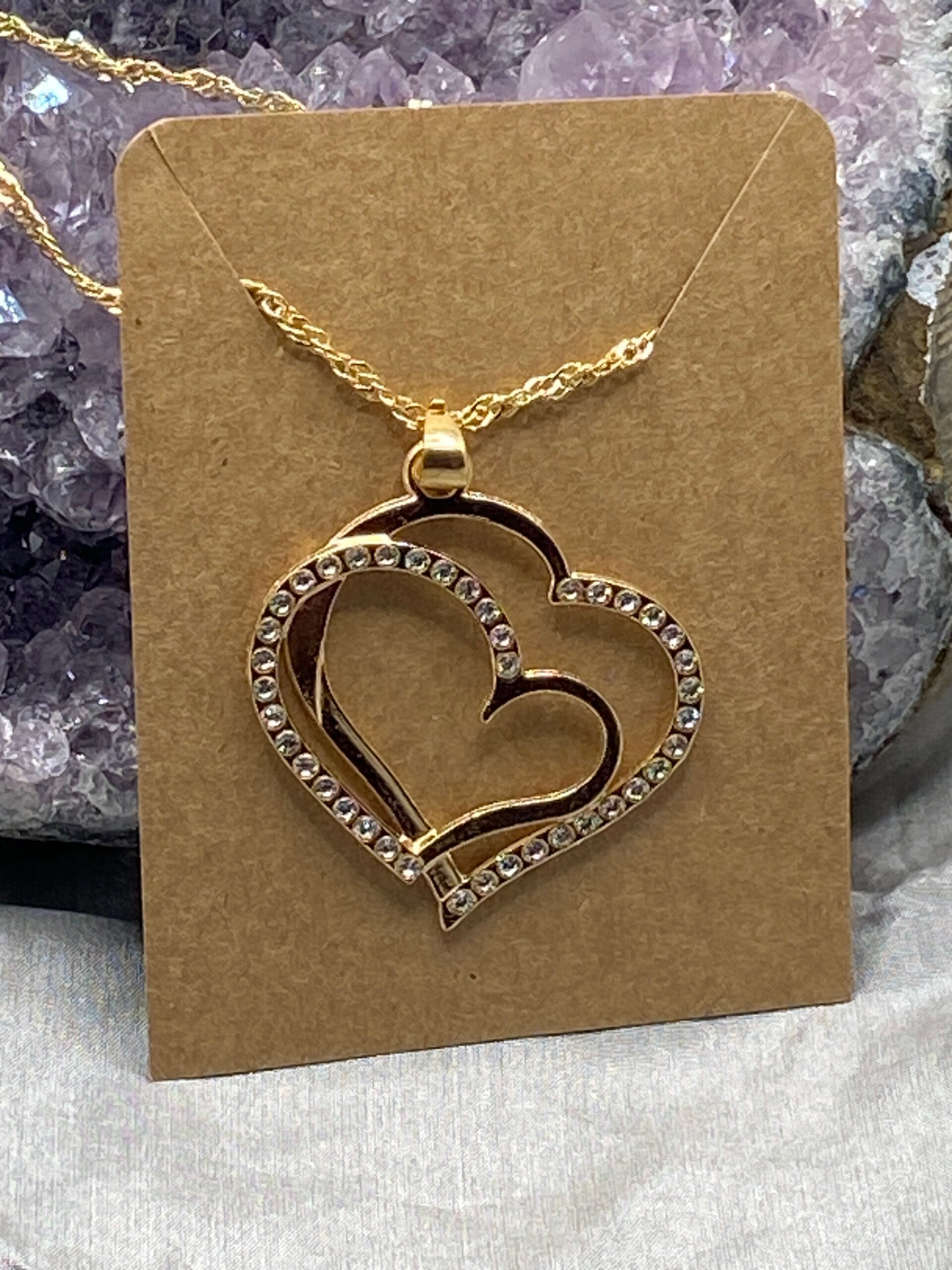 Pendentif double cœur et sa chaîne dorée