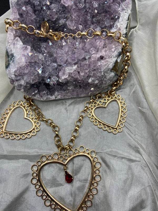 Collier 3 cœurs et rubis