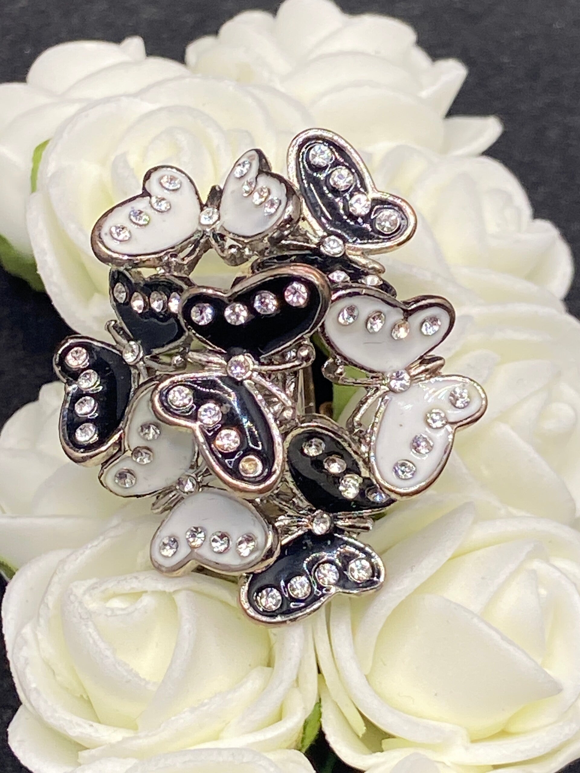 Bagues papillons noire et blanche suport argent