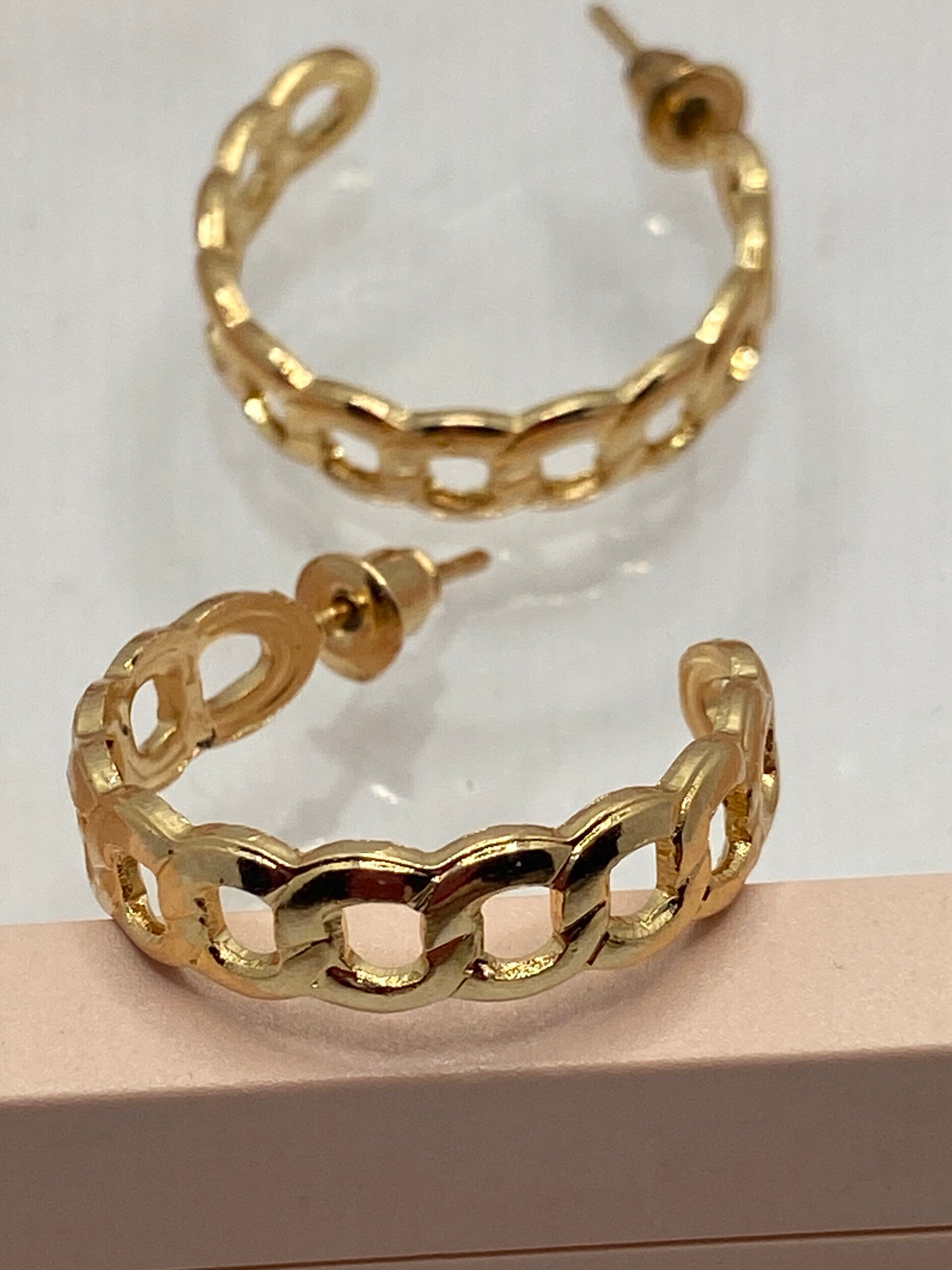 Petites créoles épaisses forme chaîne Fermoir crochet