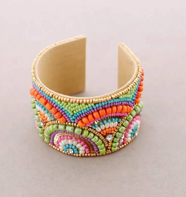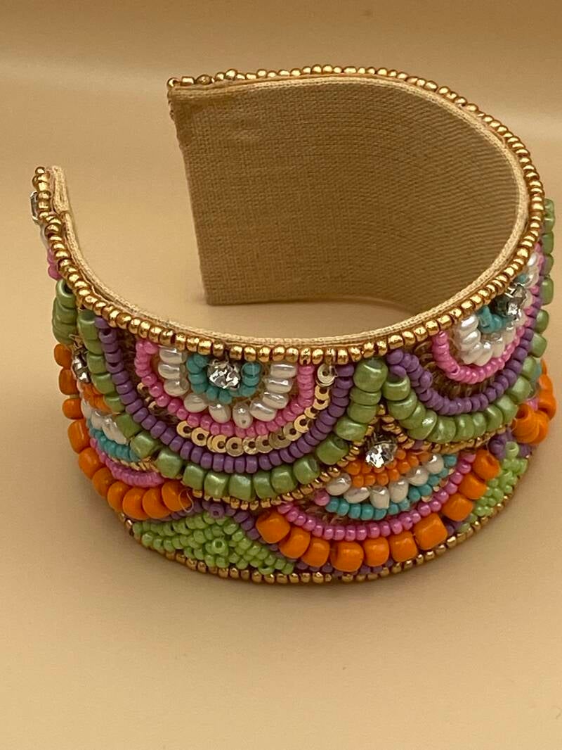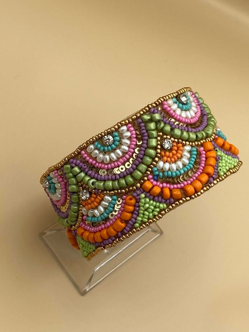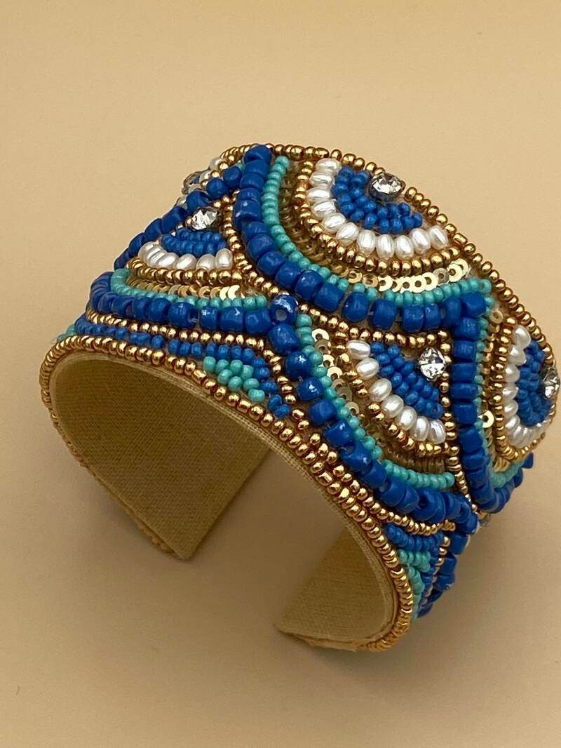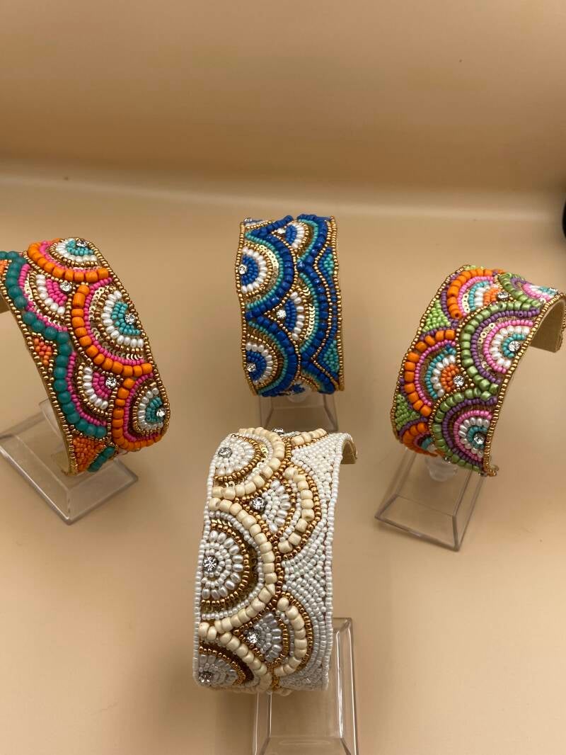 Bracelets manchons ajustables en perles et strass